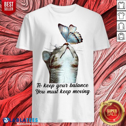 To Keep Our Balance You Must Keep Moving Cat With Butterfly Shirt
